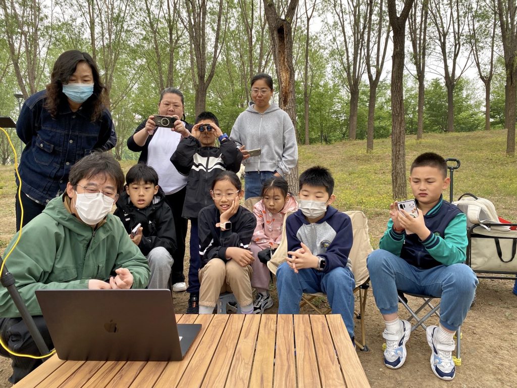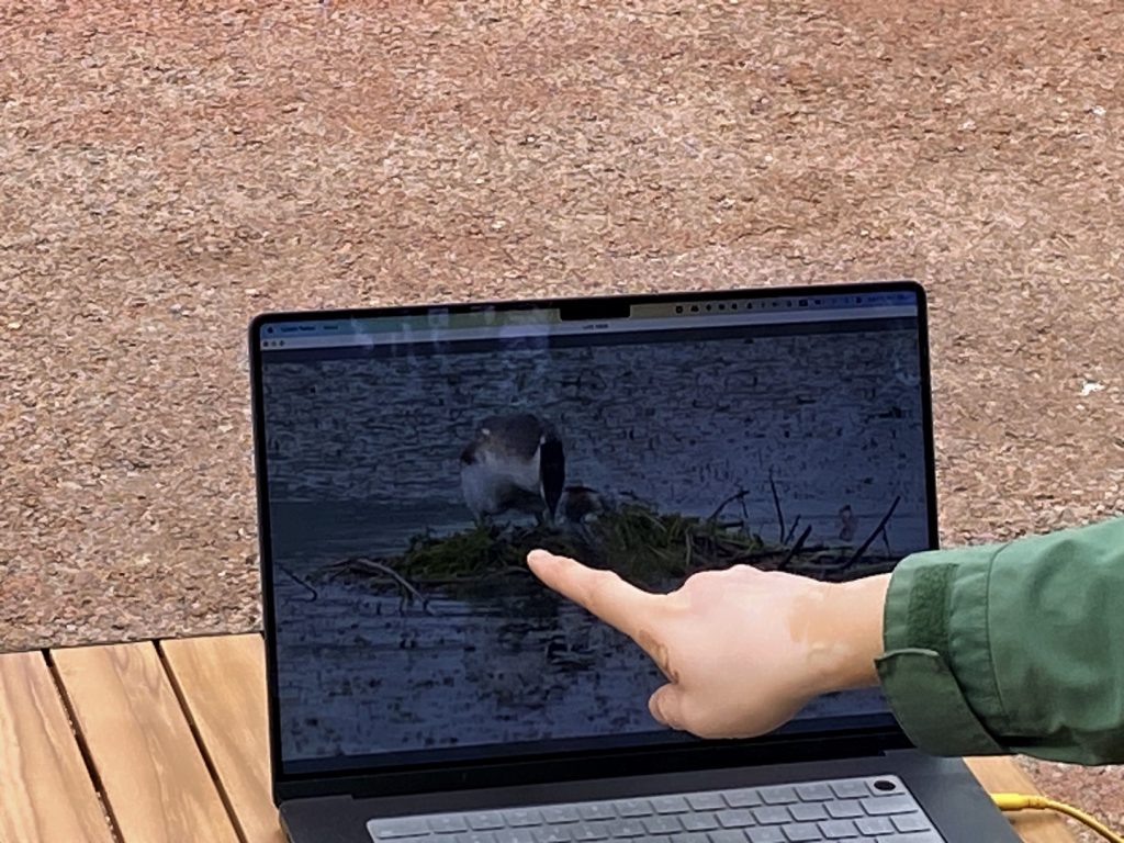 “扛镜头的猫”老师向孩子们详细讲述了马家湾湿地守护凤头䴙䴘的故事。借助相机与电脑连接后呈现的高清画面,孩子们能够清楚地观察到凤头䴙䴘优雅的体态、独特的羽冠以及宛如红宝石般的眼睛。